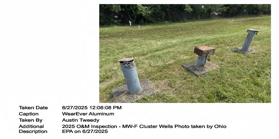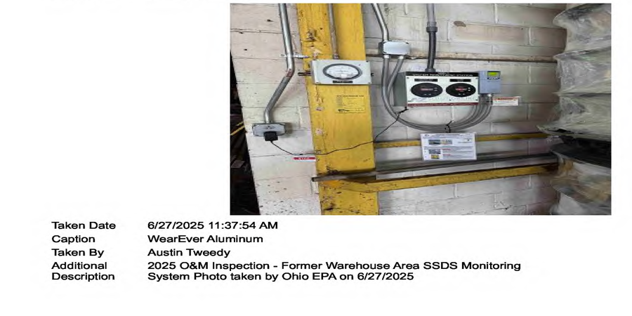 The WearEver site remains subject to strict land-use restrictions, including bans on groundwater extraction and excavation in the sludge consolidation area. The sub-slab depressurization system installed in 2018 was operational at the time of inspection, and quarterly reports continue to be submitted.