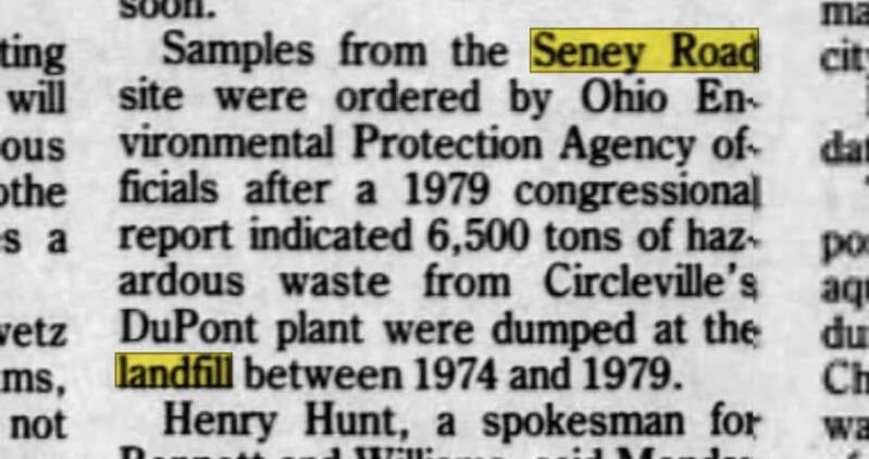 CHILLICOTHE, Ohio - Chillicothe’s toxic past isn’t staying buried. Once again, the city is in hot water with the Ohio Environmental Protection Agency—this time over its long-abandoned landfill on Seney Road, a site that, during its years of operation, received over thousands of tons of chemical waste from DuPont, according to an old Chillicothe Gazette article from the 1980s.