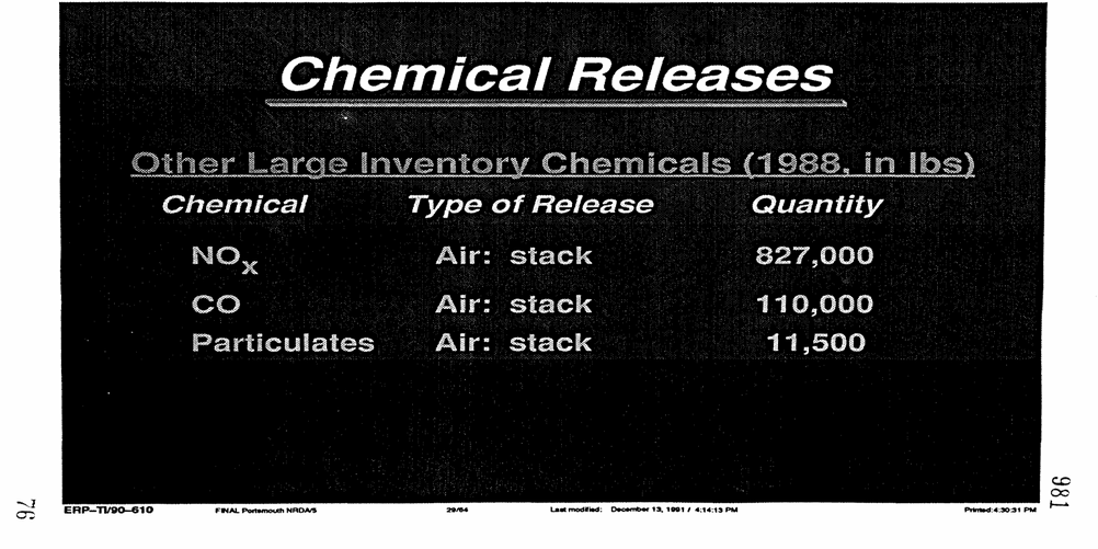 - Routine Emissions: Atmospheric vents from buildings like X-700, X-705A (incinerator), and X-720 were potential sources. The Steam Plant was a source of quantified airborne releases in 1990 (Sulfur dioxide, NOx, CO, Particulates).