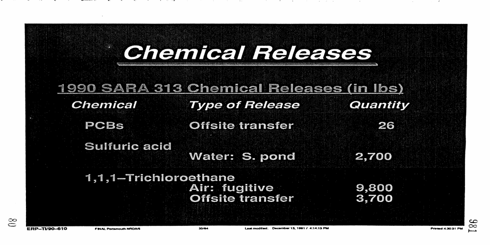 These internal DOE documents reveal that hundreds of thousands of pounds of dangerous chemicals were released from the plant over a two-year period.