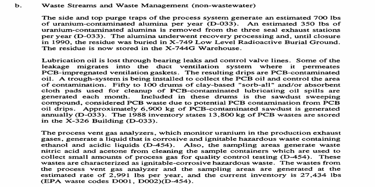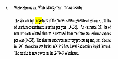 While the "Midnight Rockets" launched radioactive gases, internal records expose the hidden burden of other radioactive materials being generated. Annually, an estimated 700 lbs of uranium-contaminated alumina from purge traps and an additional 350 lbs from seal exhaust stations were produced. These radioactive residues were either buried in the X-749 Low Level Radioactive Burial Ground or stored in the X-744G Warehouse. This reveals a massive, ongoing accumulation of solid radioactive waste that was not merely emitted but actively managed, albeit in ways that may have created further long-term environmental liabilities.