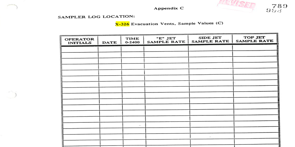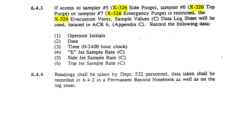 Despite the existence of seemingly elaborate internal procedures for monitoring radioactive emissions, the documents highlight critical flaws. They detail the intricate Vent Sampler Cabinet system, specific X-326 Evacuation Vents, Sample Values (C) Data Log Sheets for individual purge lines, and meticulous Continuous Vent Sampler Trap Change Checklists for tracking radioactive material. These procedures even included precise formulas for calculating uranium and technetium emissions.